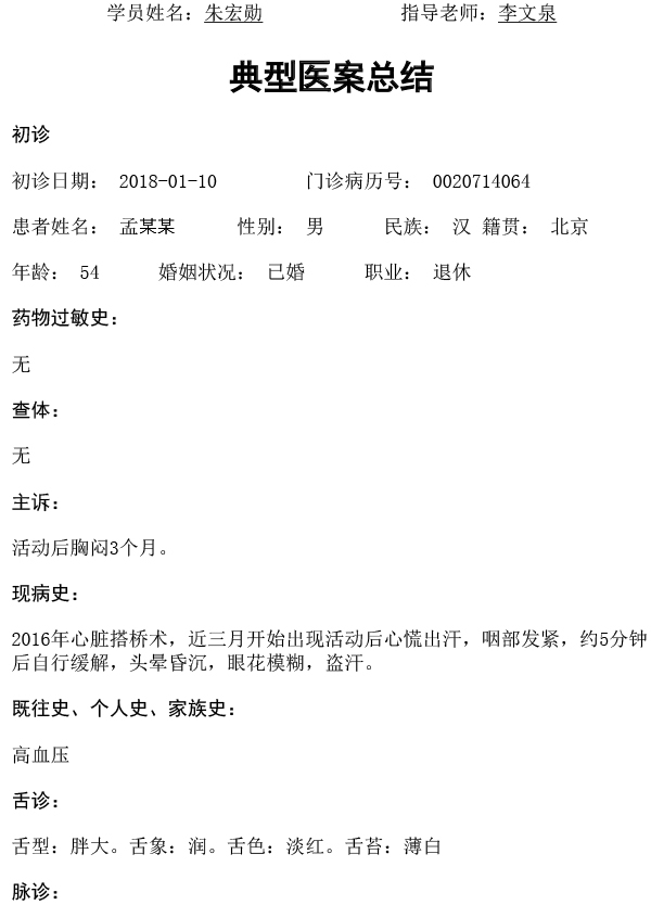 第六批师承医案-朱宏勋-冠心病