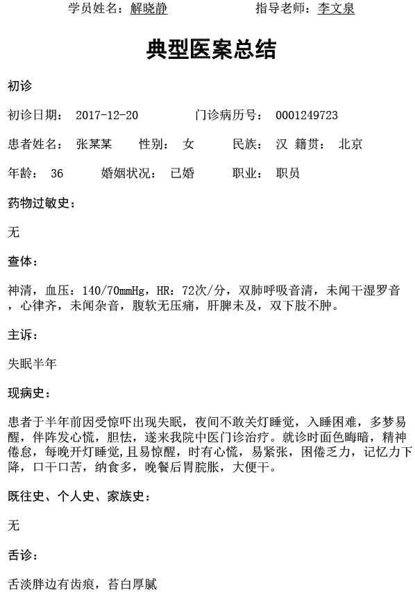 第六批师承医案-解晓静-疏肝理气化痰开窍法治疗失眠