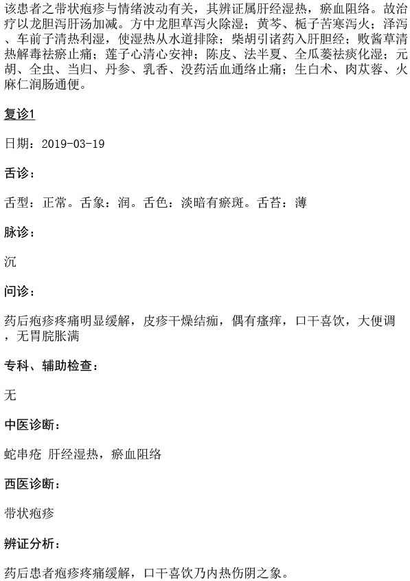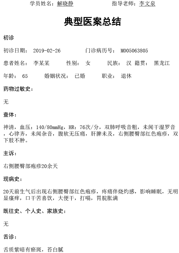 第六批师承医案-解晓静-清肝泻火化湿活血止痛法治疗蛇串疮