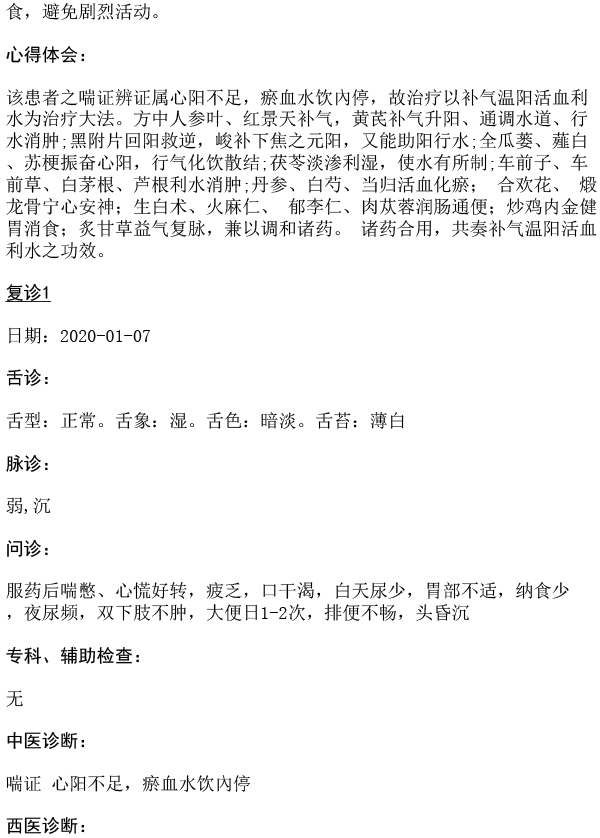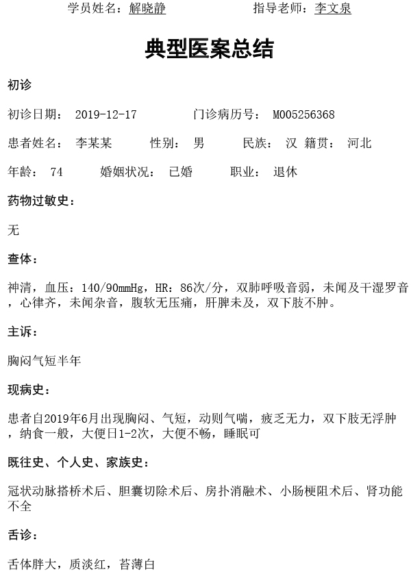 第六批师承医案-解晓静-补气温阳活血利水治疗慢性心功能不全
