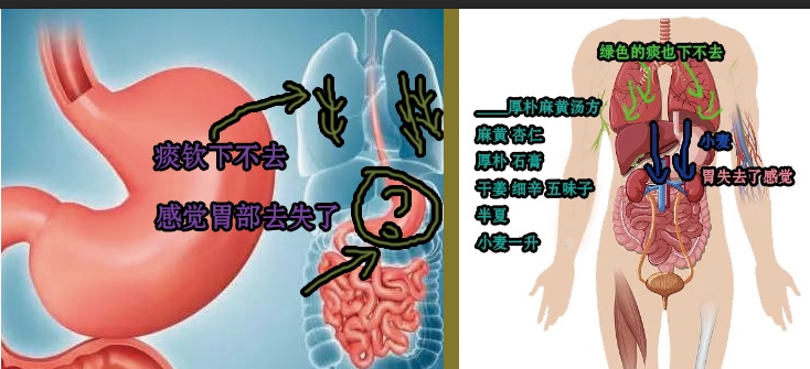 麻黄12g 杏仁10g 厚朴15g 石膏7g 干姜6g 细辛6g 五味子5g 半夏8g 小麦一升(大概50g)