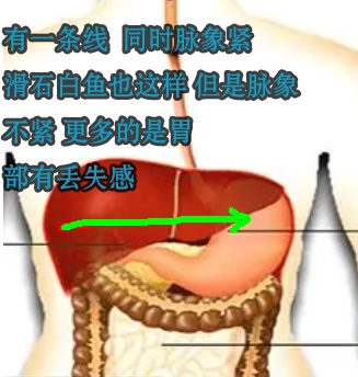 趺阳脉微弦,法当腹满,不满者必便难 ,两 胠疼痛,此虚寒从下上也,以温药服之。病者腹满,按之不痛为虚,痛者为实,可下之。舌黄未下者,下之黄自去。